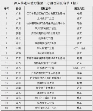 附件:深入推进环境污染第三方治理园区名单(拟)